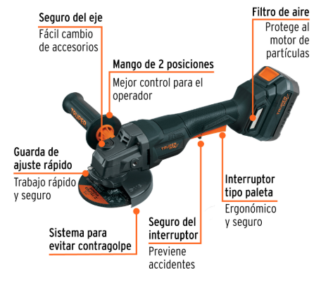 La esmeriladora inalámbrica Truper MAX-20EP de 4-1/2” es la herramienta perfecta para trabajos de esmerilado y corte en acero, ladrillo, azulejos y piedra. Su motor libre de carbones (brushless) garantiza mayor durabilidad, cero mantenimiento y un desempeño constante incluso en uso prolongado. Ideal para profesionales que buscan potencia, portabilidad y rendimiento en un solo equipo.
