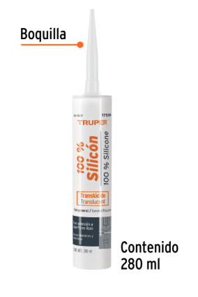 El sellador transparente Truper 100% silicón de 280 ml es ideal para trabajos de sellado, impermeabilización y aislamiento en interiores y exteriores. Su fórmula pura de silicón garantiza máxima adherencia, elasticidad y resistencia a la intemperie, brindando acabados duraderos y limpios en superficies lisas o porosas.